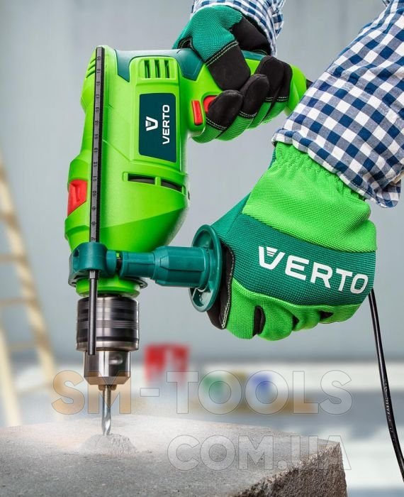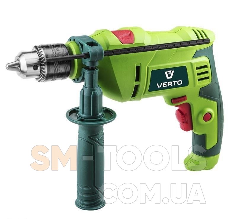 Ударная дрель 710 Вт с держателем ключа 13 мм. Дрель обладает функцией вращения и вращенения с ударом. Мощность 710 Вт позволяет сверлить отверстия диаметром до 25 мм в древесине 15 мм в бетоне и 13 мм в стали. Сверло имеет переключатель обратного вращения, возможность постепенного регулирования скорости. Дрель оснащена длинным кабелем, позволяющий свободно работать с инструментом. Эргономичная ручка повышает комфорт и безопасность работы. С дополнительной рукояткой и ограничителем глубины сверления . Соответствие европейским стандартам безопасности подтверждается сертификатом CE.