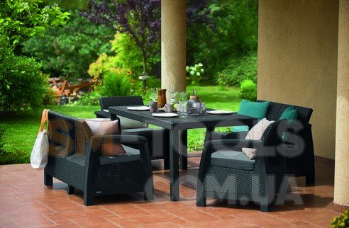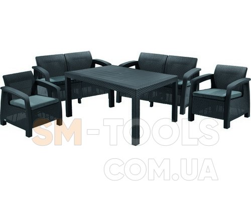 Bahamas Fiesta - это комплект мебели, в состав которого входят два кресла, две двухместные лавки и большой прямоугольный стол. Комплект идеально выполняет функцию мебели, предназначенных для приема пищи. Такой комплект идеально подойдет для меблировки большого пространства, прекрасно подходит для организации семейного гриля или вечеринки в саду. Обладает прочностью и устойчивостью к воздействию неблагоприятных погодных условий и УФ-лучей. Bahamas Fiesta предлагается в элегантной цветовой гамме. Легко чистится, просто собирается.