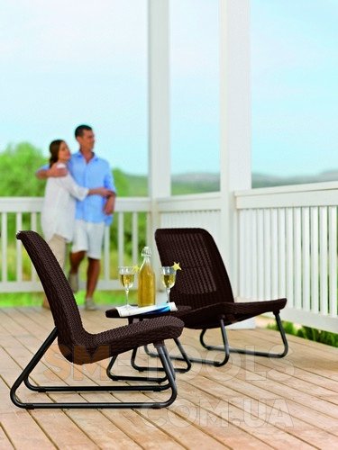 Мебельный комплект Rio Patio - это сочетание современной стилистики и комфорта. В состав комплекта входят два низкие стула и квадратный столик, которые благодаря компактным размерам идеально заполнят небольшое пространство, такой как домашний балкон или маленький сад. Легкий в очистке мебельный комплект является долговечным и устойчивым к действию неблагоприятных атмосферных факторов и УФ-излучения. Представлены в теплой классической гамме цветов.