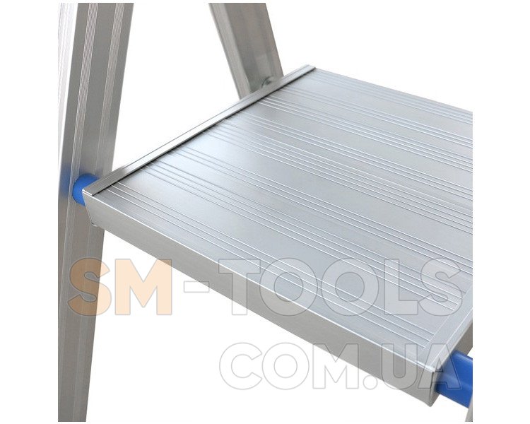 Благодаря особому пресс-ударному исполнению ступеней стремянка может использоваться на профессиональных работах;