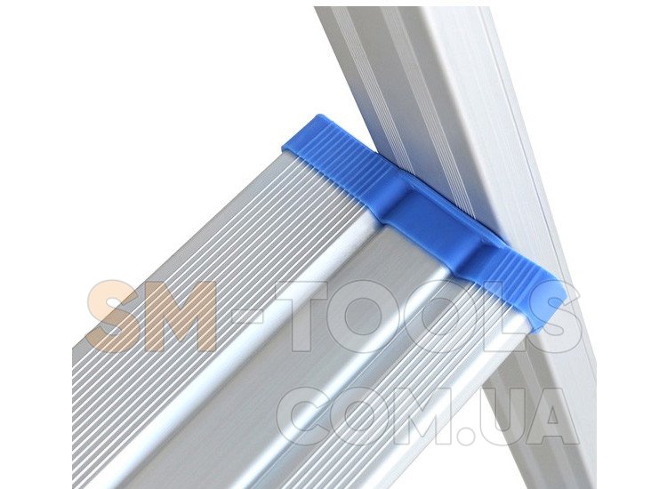 Торцевые окончания ступеней профессиональной стремянки алюминиевой VIRASTAR ALB 5+1 ступеней снабжены заглушками безопасности;