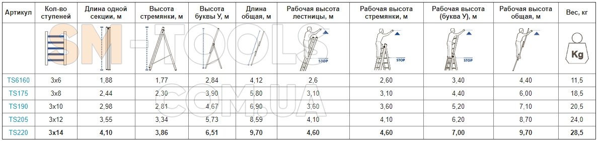 Рабоч. высота в сложен./разложен.состоянии: 4,5/9,5 м