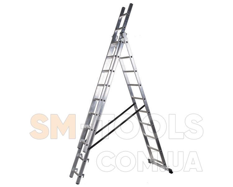 Трехсекционная лестница VIRASTAR DW 3 PROFI 3x10 ступеней изготовлена из прессованного алюминиевого профиля;