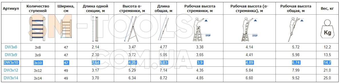 Трехсекционная лестница VIRASTAR DW 3 PROFI 3x10 ступеней предназначена для бытового и профессионального применения.