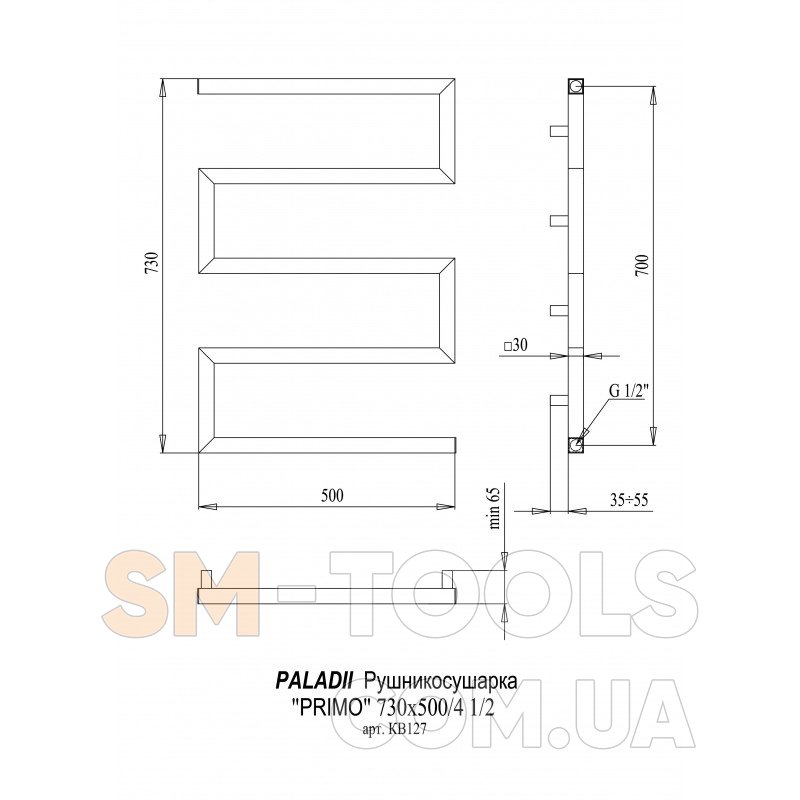 Полотенцесушитель PALADii Primo 730х500/4 КВ127
