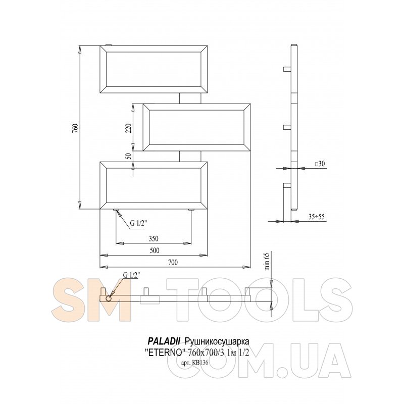 Полотенцесушитель PALADii Eterno 760х700/3 КВ136
