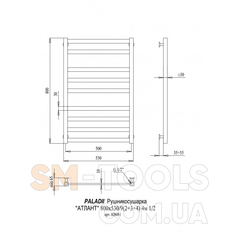 Полотенцесушитель PALADii Атлант 800х530/9 КВ081