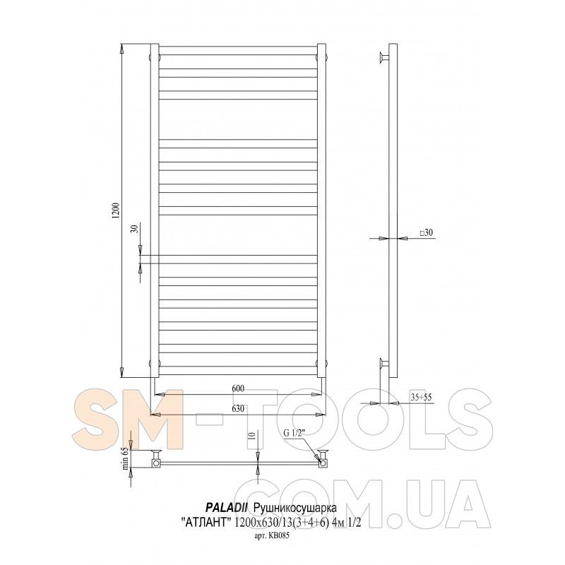 Полотенцесушитель PALADii Атлант 1200х630/13 КВ085