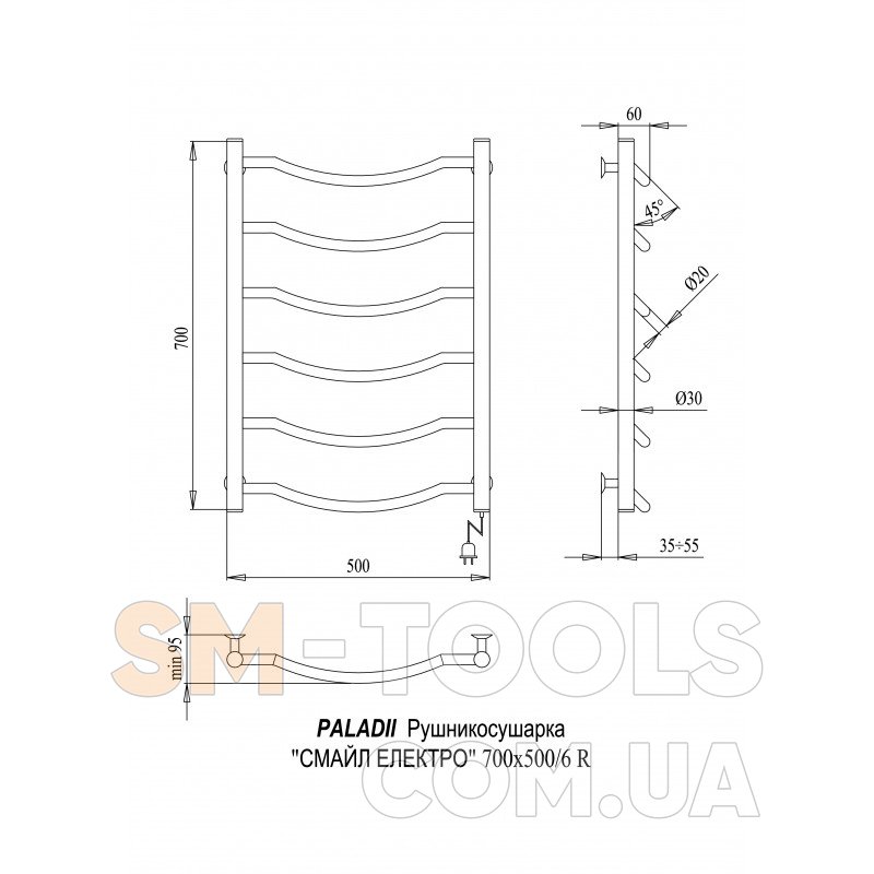 Полотенцесушитель PALADii Смайл Электро 700х500/6 СМе200РR