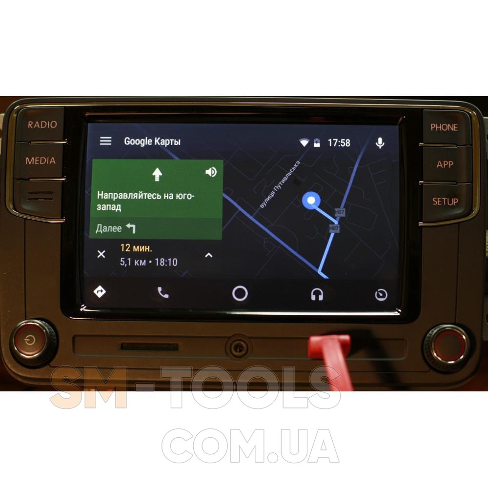 Предустановлены система Apple CarPlay, и система AndroidAuto, которые вызываются нажатием на кнопку APP. При соединении через USB-кабель с телефоном, на магнитоле работает навигация через Google Maps или Apple Maps с голосовым и визуальным ведением по маршруту, возможностью голосового управления навигацией.