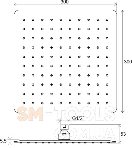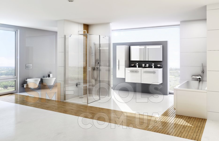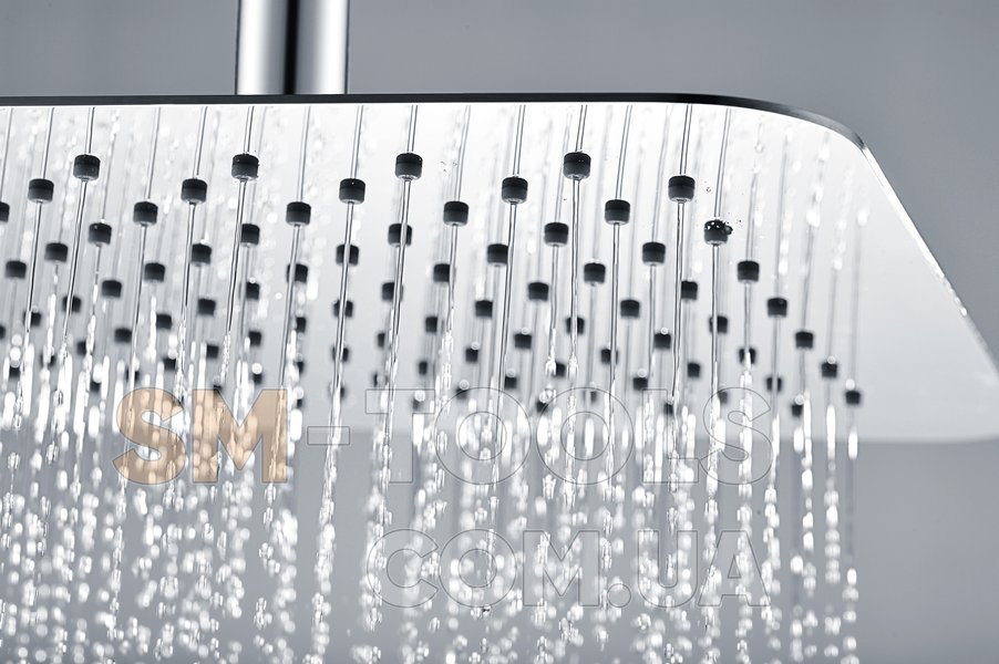 Верхний душ стильной прямой формы идеально дополнит душевые уголки из коллекции Chrome.