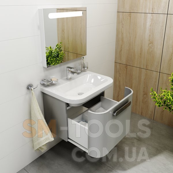 Идеальная гармония традиций и современного дизайна. Шкафчик идеально повторяет форму керамического умывальника и увеличивает его потребительскую ценность в виде объемного пространства для вещей. За выдвижной дверцой скрывается высокий ящик, способный вместить в себя все, начиная от полотенец и заканчивая косметикой.