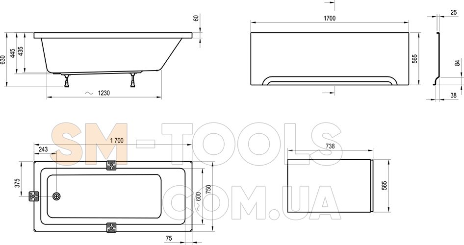 Прямоугольную ванну 10° можно дополнить шторами для ванны CVS2, PVS1, BVS1, BVS2. В ванную рекомендуем переднюю и боковую панели и сточный комплект для ванны.