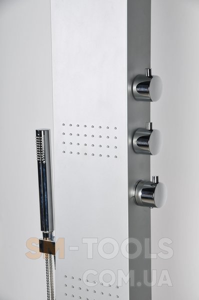 Минималистский стиль, никоим образом не влияющий на функциональность изделия. Благодаря боковому расположению блока управления, термостатического смесителя и ручного душа не требует много места и визуально прилегает к стене. Внешне ненавязчивый металлический корпус оснащен тремя зонами форсунок и верхним душем. Ежедневную эксплуатацию в домашних условиях облегчат форсунки "водопад" с интенсивной струей, расположенные в нижней части панели.