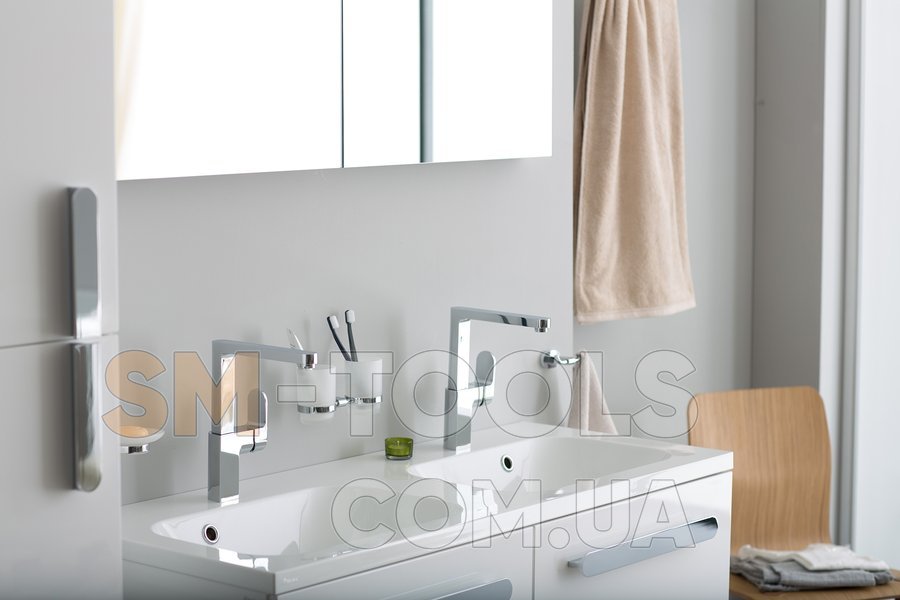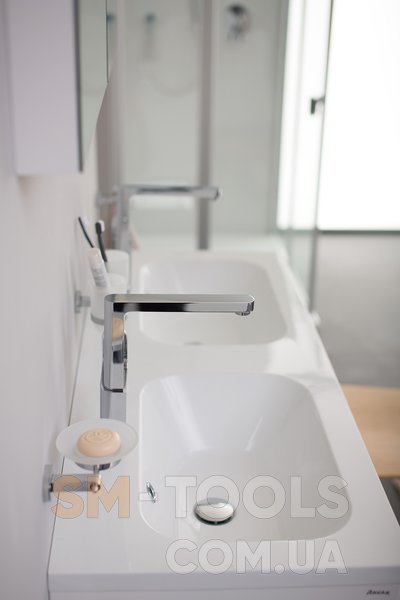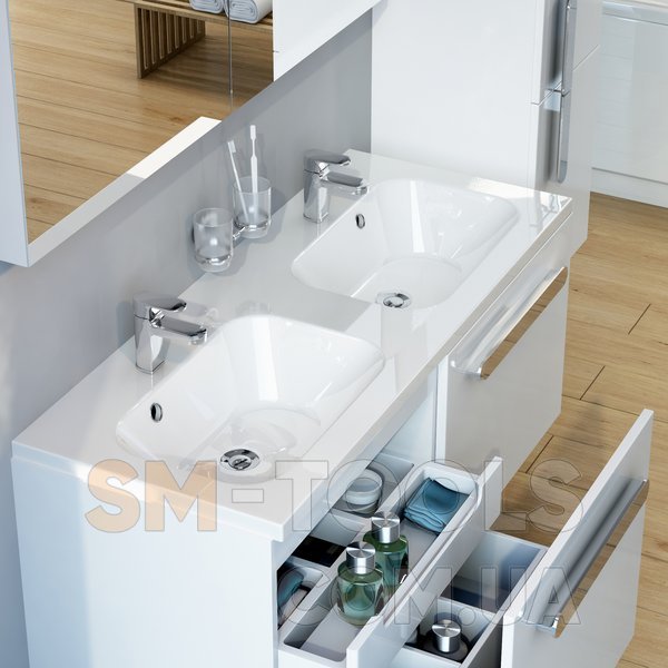 Красивый и практичный. Двойной умывальник позволит избежать утренней очереди в ванную комнату, особенно в больших семьях. Он устанавливается отдельно на стену или комбинируется со шкафчиком SD Chrome.