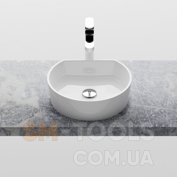 Авторский умывальник изготовленный из литого мрамора, дизайн которого основан на элементарной геометрической форме круга. Идеально сбалансирует в ванной комнате элементы прямоугольной формы, такие как плитка душевого уголка или мебель. Подходит для установки на столешницу.
