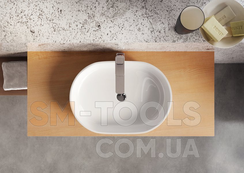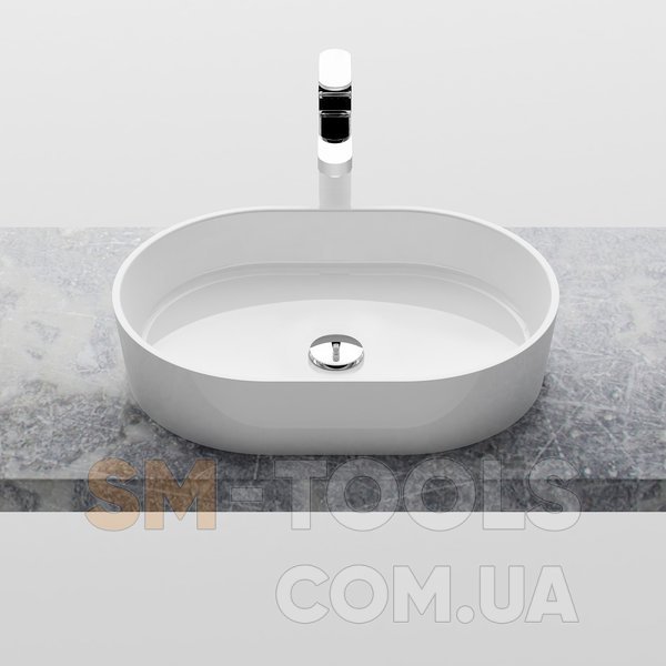 Авторский умывальник изготовленный из литого мрамора, дизайн которого основан на элементарной геометрической форме круга, который дизайнер трансформировал в практичный овал. Комфортная ширина для каждодневного использования. Идеально сбалансирует в ванной комнате элементы прямоугольной формы, такие как плитка душевого уголка или мебель. Подходит для установки на столешницу.