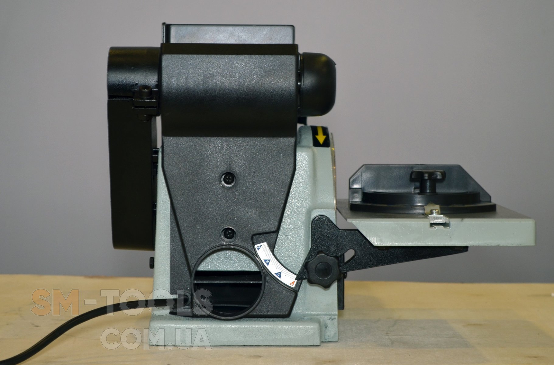 Регулируемый по наклону рабочий стол, позволяет проводить работы под наклоном. Устойчивая конструкция станка обеспечивает высокую точность шлифовки.