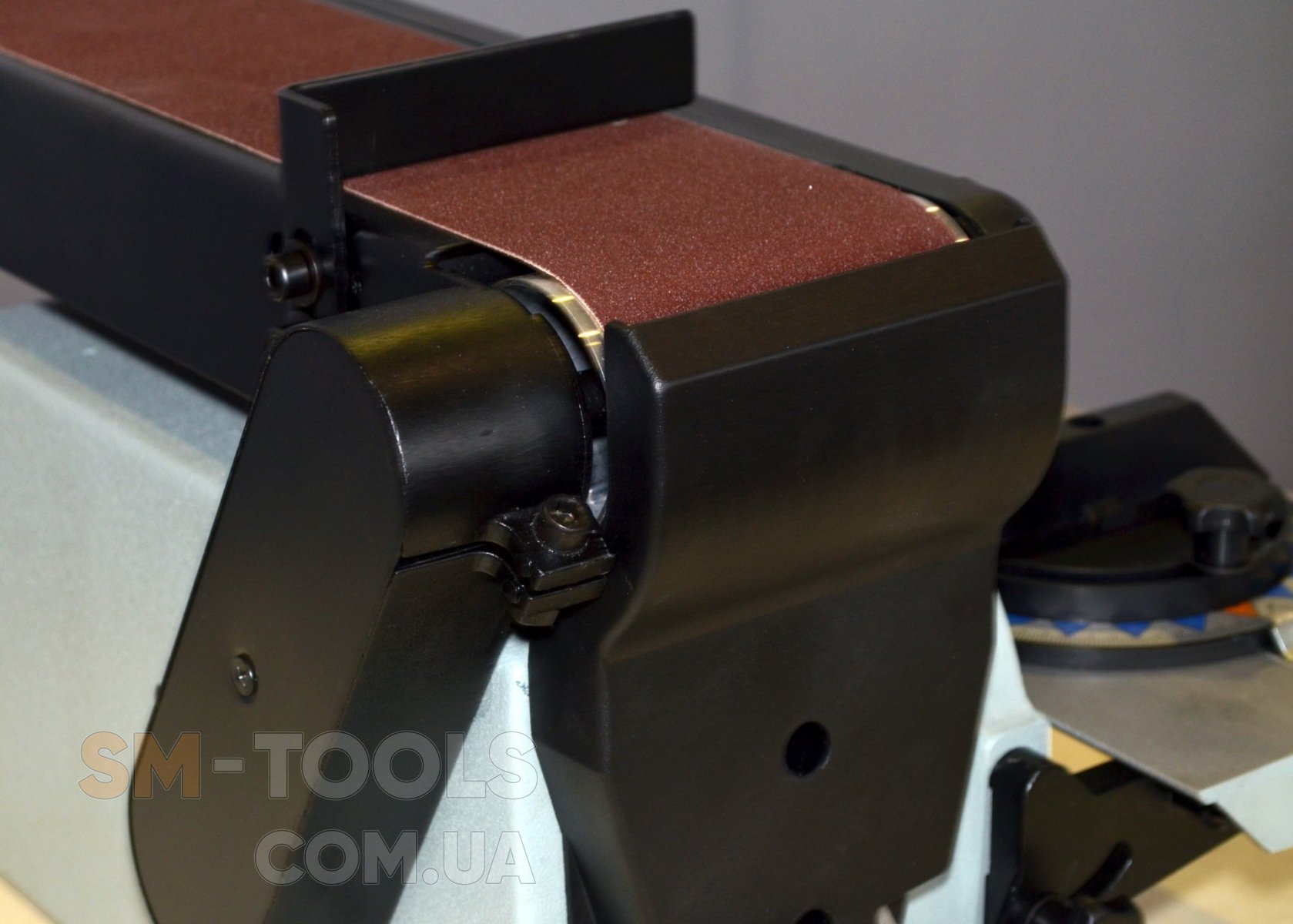 Дисковый шлифовальный узел используется для менее объёмных, но более точных работ. Возможность наклона рабочего стола совместно с использованием шлифовальных дисков расширяет сферу применения станка.