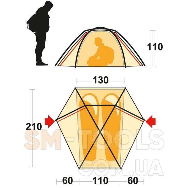 Внутренняя палатка (ДхШхВ), мм: 2100 х 1300 х 1100