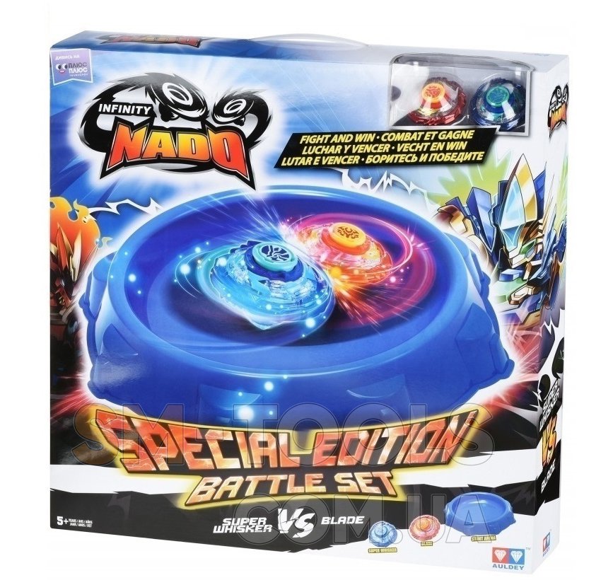 Арена Infinity Nado для турниров волчков в подарочной картонной упаковке и в комплекте с двумя волчками серии Стандарт (YW624301 Holy Whisker и YW624302 Fiery Blade) с металлическими кольцами. Набор дает возможность быть сразу готовым к сражениям - все в комплекте для 1-2-х игроков. Арена применима для волчков разных производителей. Не создает преимуществ для любых из них для честности определения победителей. Невысокий борт для возможности выбрасывания соперника за пределы арены. Большая площадь для участия нескольких соперников.