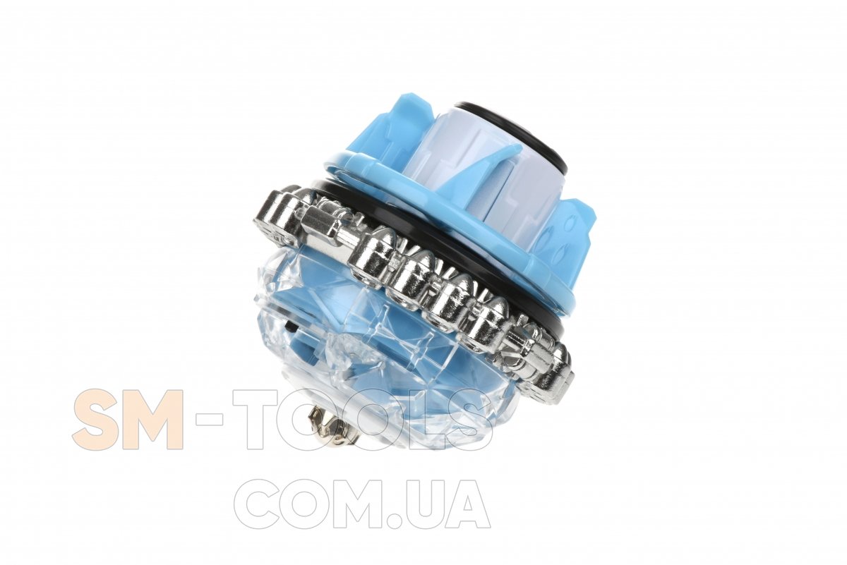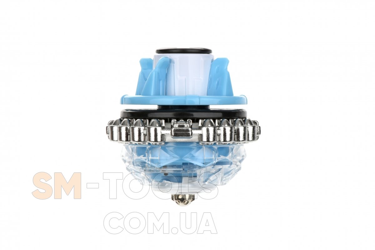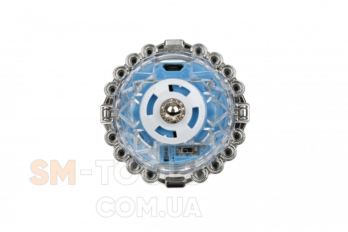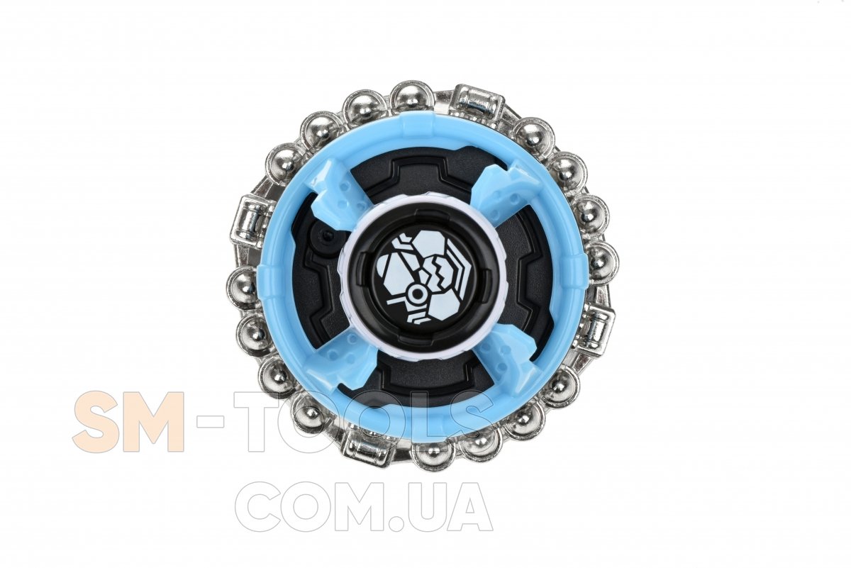Волчок выполнен в сине-белых цветах с прозрачными вставками. С таким набором вы не оставите противникам ни единого шанса на победу!