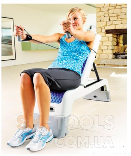 При использовании его вместе с гантелями, штангой, эспандером можно выполнить 16 различных упражнений.