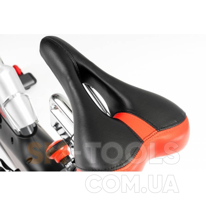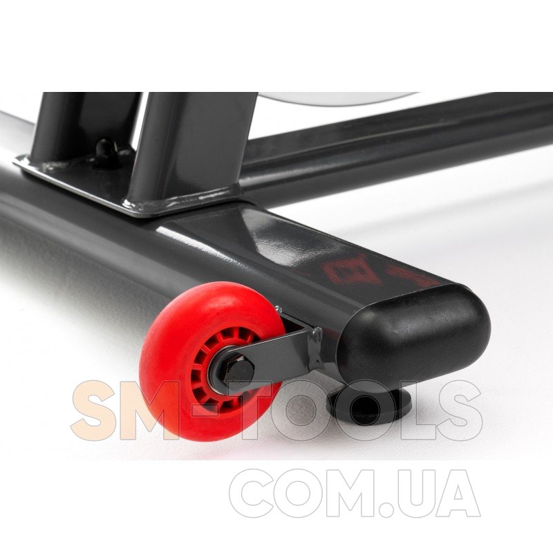 Спинбайк оснащен нескользящими педалями с фиксаторами и аварийным тормозом. Усиленная конструкция и выравнивающие ролики, встроенные в задний стабилизатор, обеспечивают безопасность упражнений. После окончания тренировки не придется беспокоиться о том, что Ваша гостиная будет продолжать напоминать тренажерный зал, ведь сайкл имеет транспортные ролики, которые позволят убрать его, например, в шкаф.