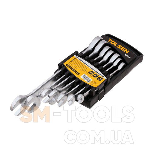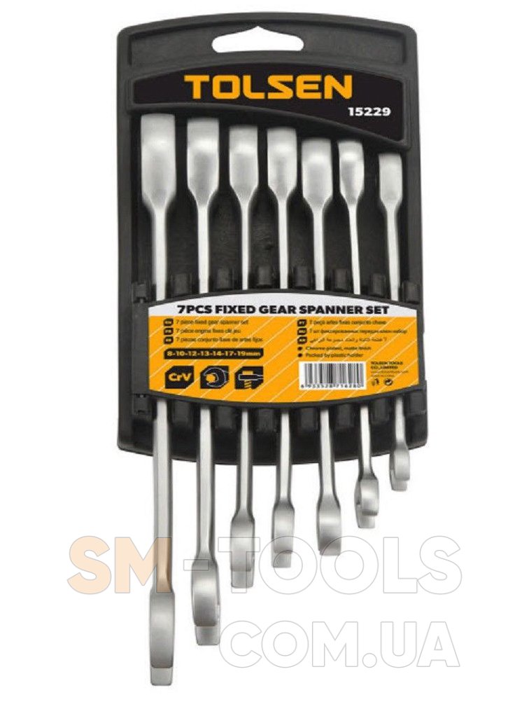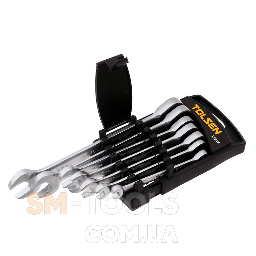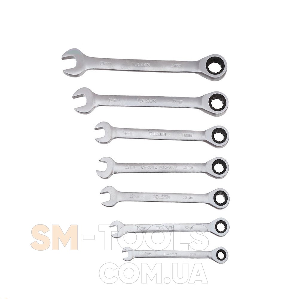 Набор из 7 храповых рожково-накидных ключей от Tolsen 8-19 мм. Изготовлены из Cr-V.