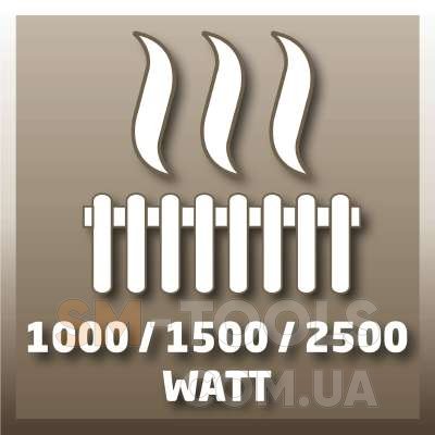 2 переключателя с 3 настройками тепла (1000 Вт / 1500 Вт / 2500 Вт)