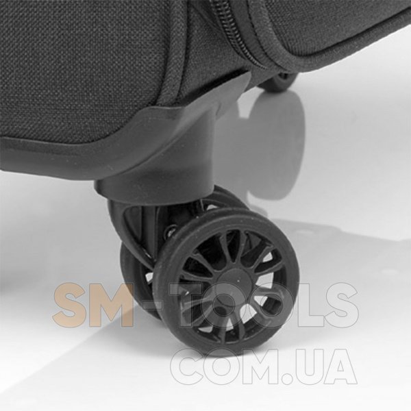 Чемодан оснащен четырьмя спаренными роликовыми колесами из высокотемпературного термопластичного полиуретана (TPU). Материал обладает прочностью сравнимой с пластиком, гибкостью силикона, а так же имеет повышенную устойчивость к перепадам температур. Отличительной особенностью колес из TPU материала является снижение шума до минимума при качении чемодана по неровной поверхности. Благодаря устойчивости к истиранию материал колес отличается длительным сроком эксплуатации.