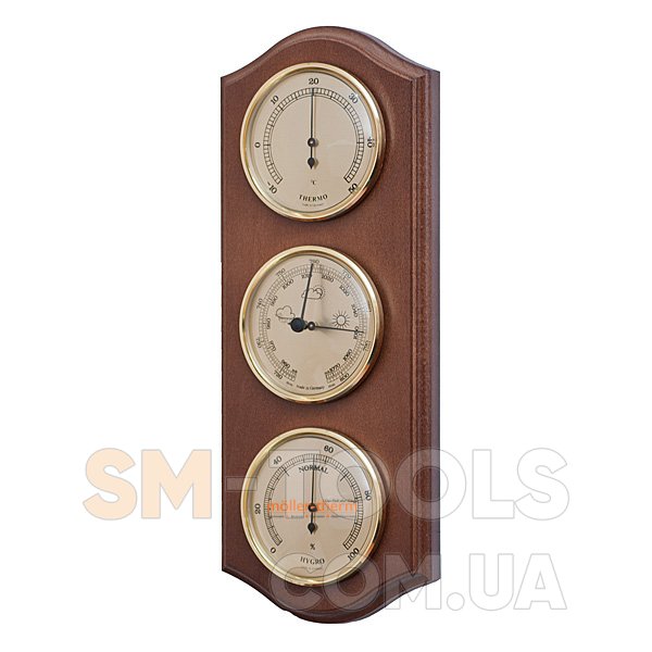 Компания Moller-Therm, GmbH (Германия) отлично зарекомендовала себя в сфере разработки и изготовления различных измерительных приборов. Барометры интерьерные являются одной из популярных групп товаров, которые представлены этим производителем на рынке Европы и стран СНГ. Барометр интерьерный является не только высокоточным прибором для измерения атмосферного давления, но и станет изысканным украшением любого интерьера. Все детали и элементы приборов изготавливаются и собираются в Германии. Точность и гарантированная долговечность - вот основной девиз компании Moller-Therm. В подтверждение этого на свою продукцию производитель предоставляет два года гарантии. Все барометры адаптированы для нашего рынка и имеют измерительную шкалу не только в hPa, но и в миллиметрах ртутного столба. Некоторые модели кроме барометра имеют дополнительно гигрометр, термометр, часы.