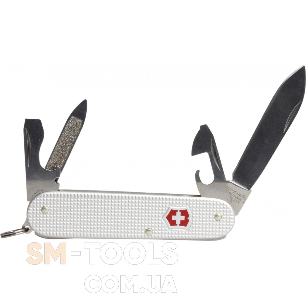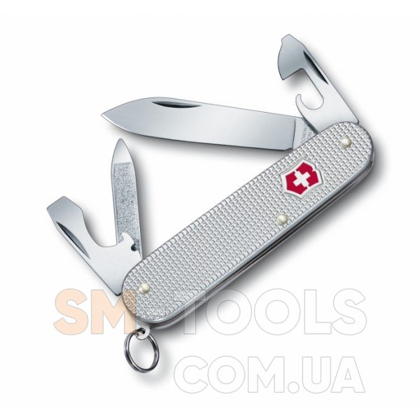 Стильный мультитул Victorinox Cadet Alox на 9 функций настоящая находка для использования в быту и во время путешествия. С таким изделием каждый сможет легко заняться ремонтом на ровном месте. Практически любые задачи решаются с помощью острого лезвия, компактных ножниц, открывалки для бутылок и других приспособлений внутри данной модели. Отдельного внимания заслуживает сам корпус из нержавеющей стали. Мультитул полностью выполнен из данного материала и за счет этого обладает высокими показателями надежности. Продолжительная эксплуатация без нареканий обеспечена каждому владельцу аксессуара.