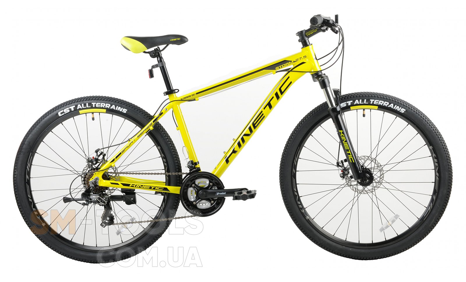 Горный велосипед KINETIC STORM 27,5" оборудован амортизационной вилкой, которая обеспечивает максимальный комфорт езды в условиях бездорожья. Это делает данную модель отличным выбором как для езды по городу, так и по пересеченной местности. Установлена система переключения от компании SHIMANO. Горный велосипед KINETIC STORM 27,5" имеет 21 скорость, которые регулируются с помощью манеток от той же фирмы, SHIMANO. Тормоза дисковые механически. Диаметр колеса 27,5 дюймов. Имеет прочны обода и надежные покрышки.