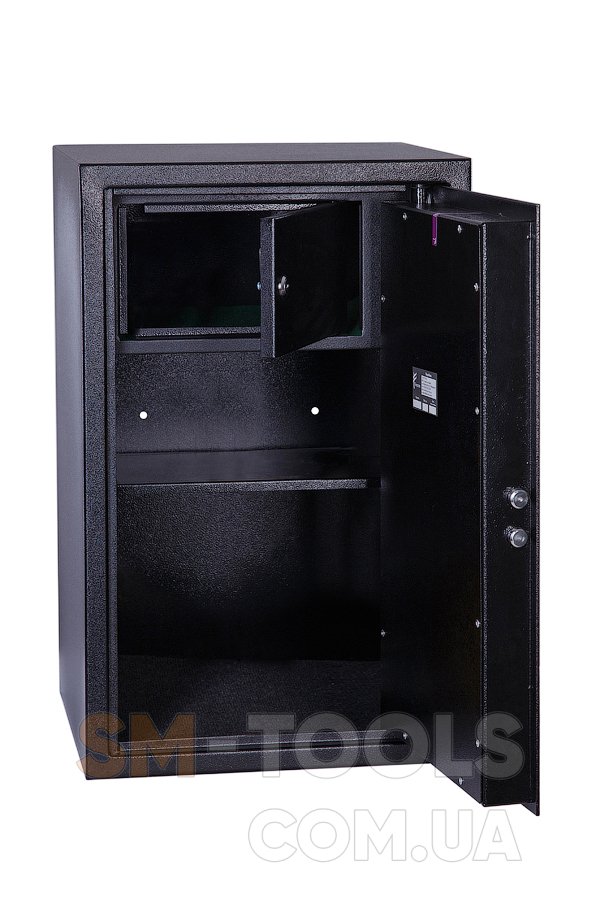 На сейф установлена 2-х ригельная система запирания. Петли находятся внутри, что дает эффективную защиту от взлома. Дверь открывается на 100°, делая процесс вложения/извлечения Ваших вещей комфортным.