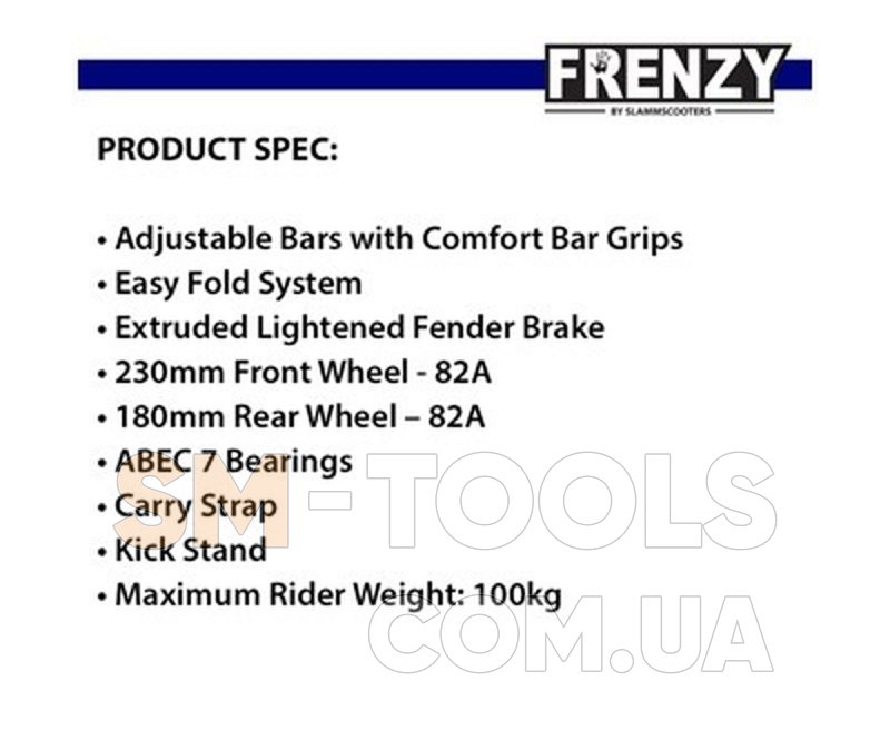 Складной самокат FRENZY RECREATIONAL SCOOTERS FR230 от ведущего производителя спортивных и экстремальных самокатов в Великобритании SLAMM SCOOTERS. Новый современный городской самокат с роскошной черной отделкой. Идеальное решение для путешествий и повседневных поездок на учебу и работу. Регулируемый по высоте руль, простая система складывания.