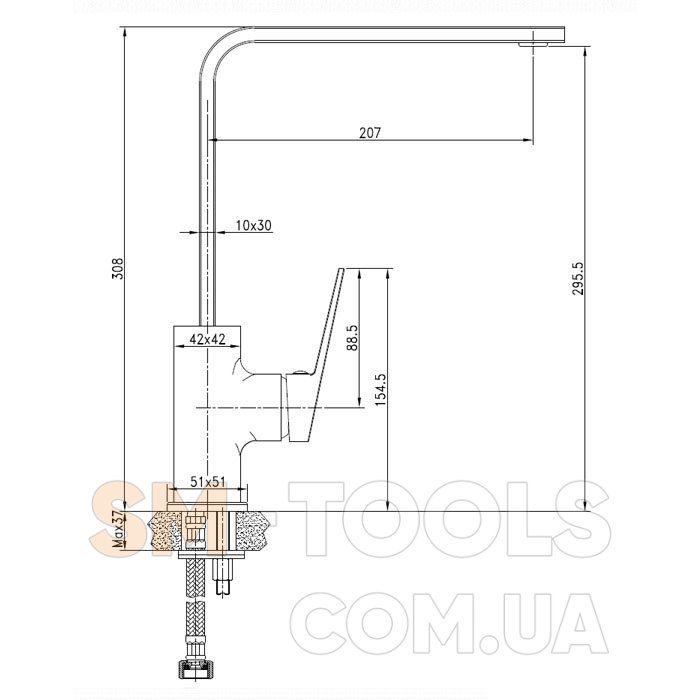 Высота излива (мм) 300