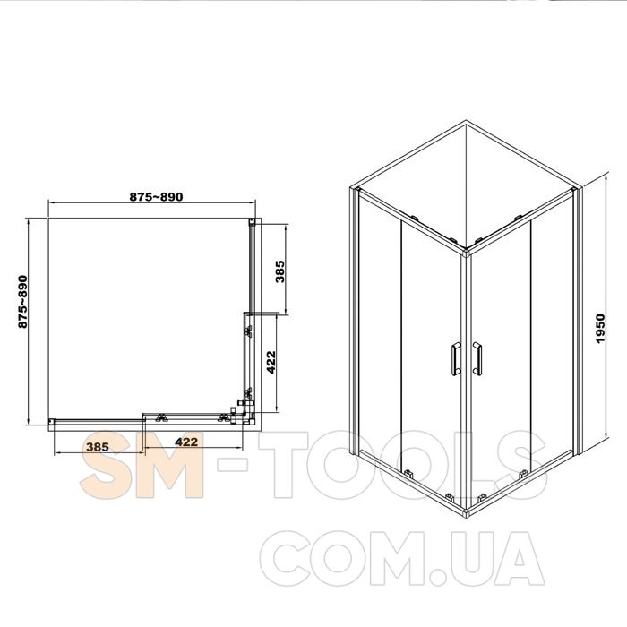 - размер - 900х900х1950 мм