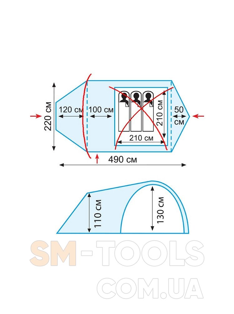 Тент: 100% полиэстер 75D190T RipStop, PU 5000 мм в ст