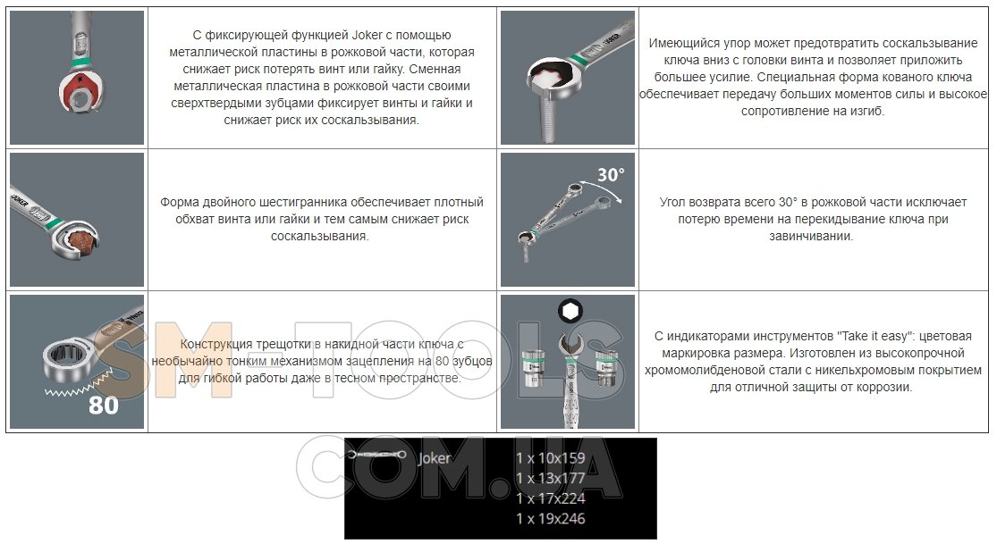 Характеристики Набор ключей трещеточных WERA 05073290001 (4 предмета):