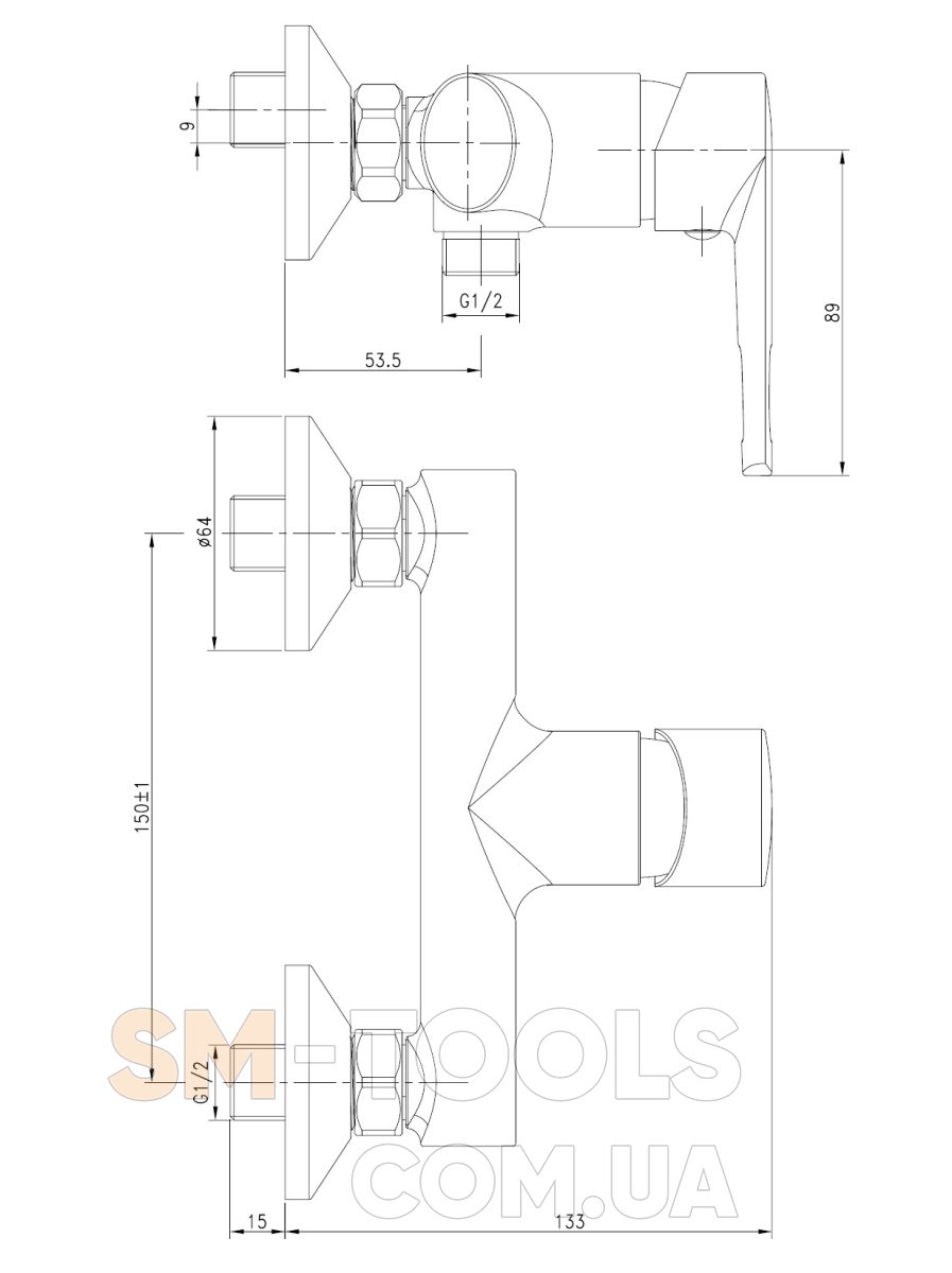 - подключение душа - G 1/2