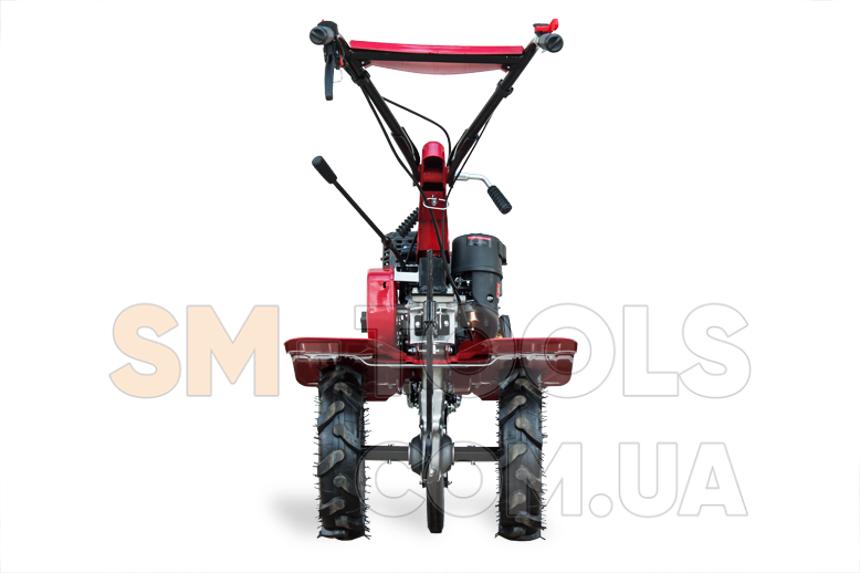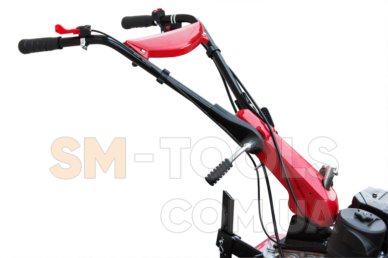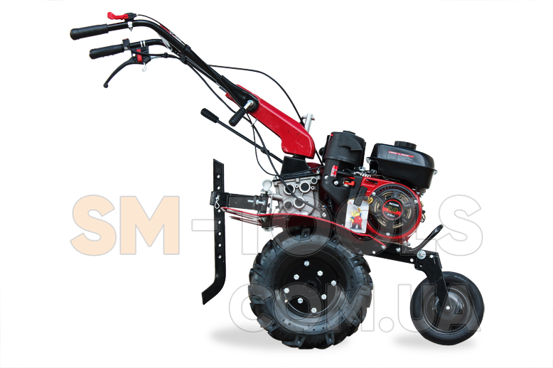 Для удобной и комфортной работы и транспортировки руль сделан регулируемым по высоте, плюс есть поворот в сторону. При установке на мотокультиватор металлических грунтозацепов на него можно агрегатировать навесное оборудование, такое как: окучник, картофелекопалку, плоскорез, картофелесажалку, сенокосилку, прицеп и др.