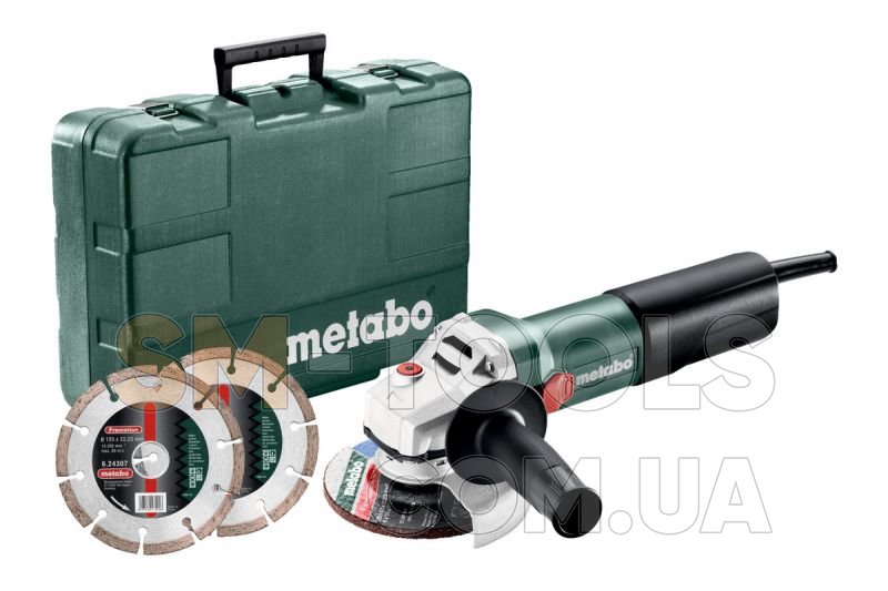 Болгарка Metabo WQ 1100-125 Set в расширенной комплектации, в которую в отличии от стандартной, входит два алмазных диска и пластиковый кейс.