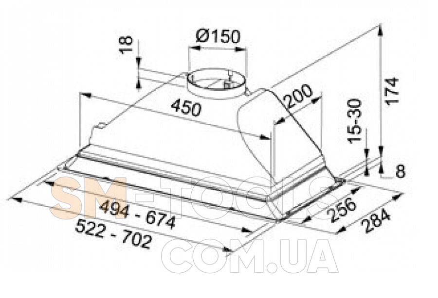 Полновстраиваемая кухонная вытяжка Franke Box FBI 722H XS с ползунковым управлением и максимальной производительностью 651 куб. м/час.