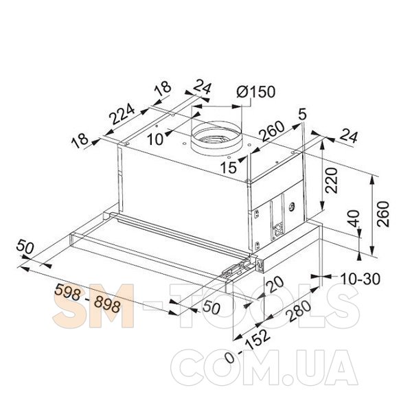 Тип вытяжки встраиваемая, телескопическая