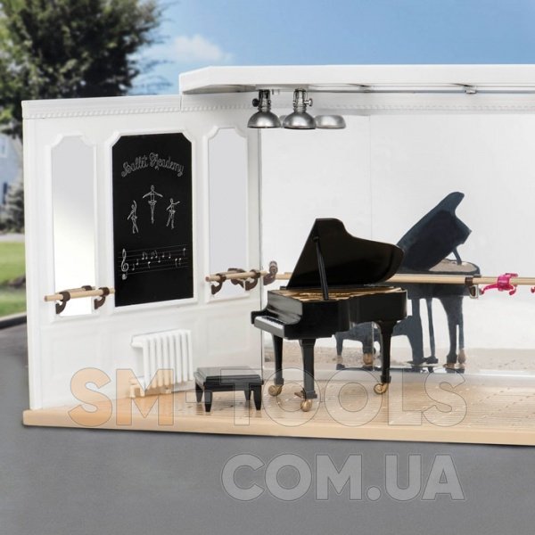 Балет - один из красивейших танцев всех времен. Это элегантное и изящное искусство, которому учатся долгие годы. Игровой набор «Балетная студия» станет интересным и полезным дополнением к куклам LORI 15, особенно из серии балерин. Главной особенностью набора является световые огни и изысканное фортепиано, которое проигрывает 4 разные мелодии. Световые и звуковые эффекты работают благодаря 3-м ААА батарейкам (входят в комплект). Кроме самой студии и пианино в набор входит: скамья, 4 клипсы для кукол и мел. Все детали хорошо детализированы и изготовлены из качественной пластмассы. Размер упаковки: 59 х 31 х 30 см. Рекомендуемый возраст: 3+.
