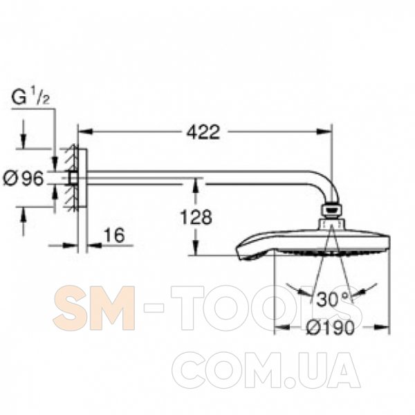- Верхний душ Ø 190 мм