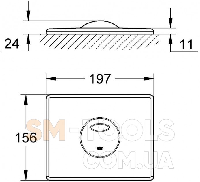 Смывная панель Skate для вертикального и горизонтального монтажа размером 156 x 197 х 11 (24 с кнопкой) мм