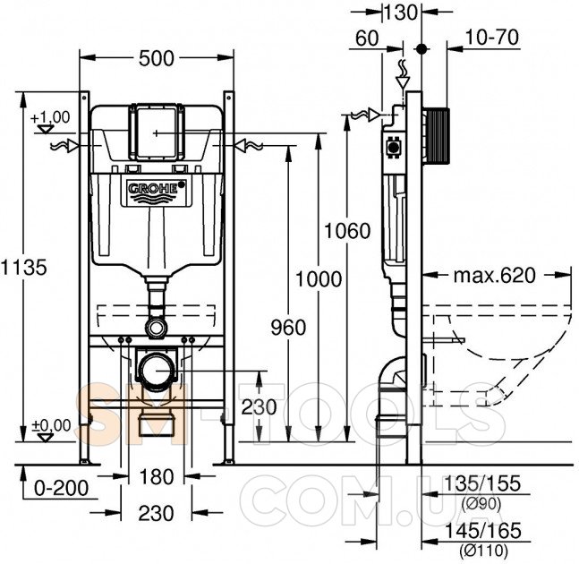 Безопасность — это то, чем характеризуются систему инсталляции Rapid SL. Стальные рамы для подвесных унитазов и раковин сертифицированы для удержания до 400 и 150 кг соответственно.