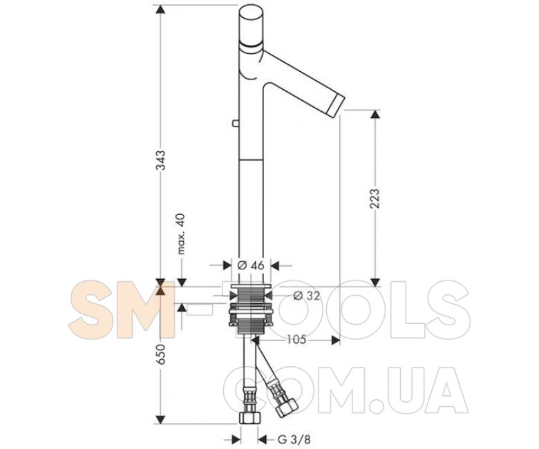 - высота смесителя 343 мм